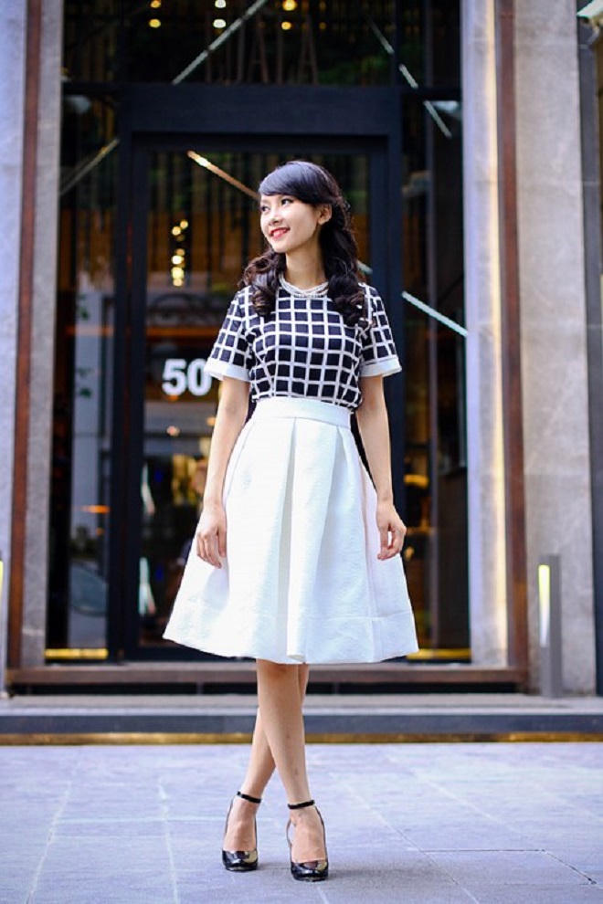 Đừng lựa chọn mẫu áo quá cầu kỳ, cách tốt nhất là những loại áo đơn giản sẽ giúp bạn trông gọn gàng và tổng thể trở nên thanh thoát hơn. Lựa chọn chân váy midi với dáng xòe vừa hoặc hơi ôm có xẻ một chút giúp nàng thấp bé khoe khéo được đôi chân, tôn lên vẻ đẹp đầy đặn, gợi cảm.