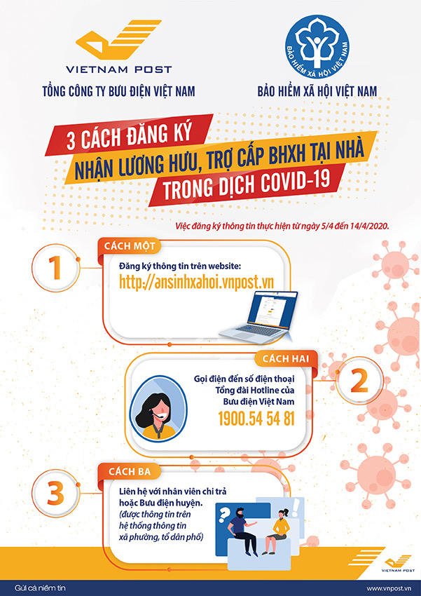 Vì vậy, để công tác phục vụ của Bưu điện được chu đáo, kịp thời và thuận lợi cho nhân viên bưu điện thực hiện chi trả tại địa chỉ, cơ quan BHXH mong muốn người hưởng lương hưu, trợ cấp BHXH hợp tác cùng cơ quan Bưu điện trong việc cung cấp địa chỉ nhận tiền tại nhà và số điện thoại người hưởng (trong địa bàn nhận lương hưu hàng tháng) tại website: http://www.ansinhxahoi.vnpost.vn. Cụ thể: