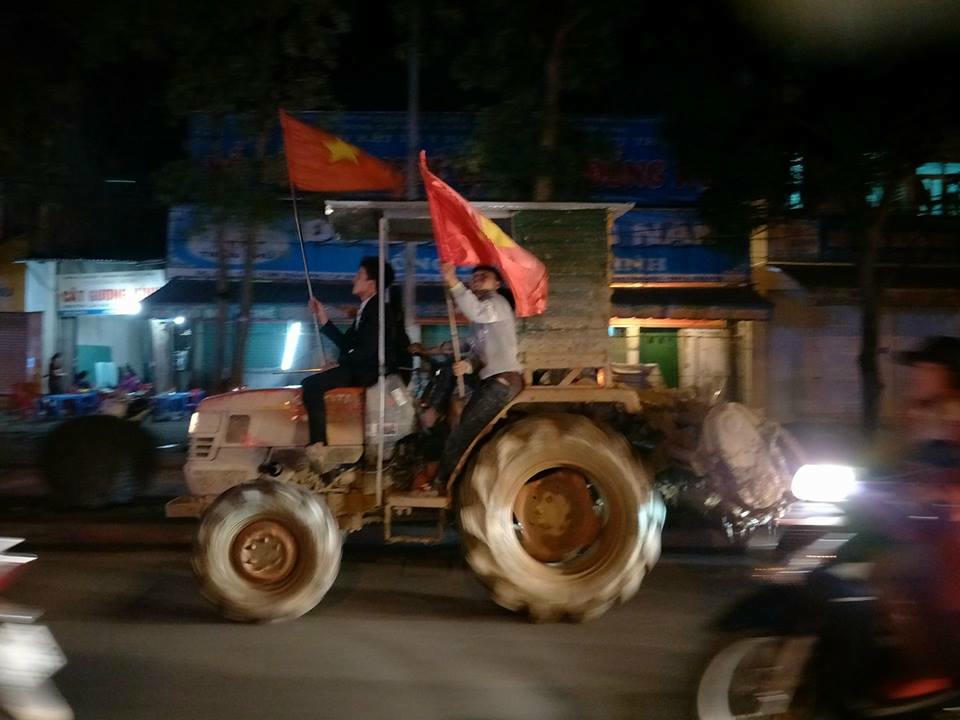 Người dân Thành Vinh (Nghệ An) cũng ăn mừng theo cách rất độc đáo của mình:
