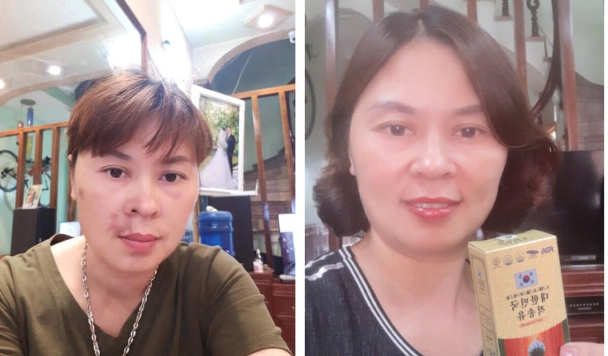 Chị mua trải nghiệm & sử dụng thử. Chỉ sau 20 ngày, vừa uống và bôi lên da mặt chị thấy cơ thể nhẹ nhàng, da mỡ màng, vết chân chim, nám mờ dần. Tình trạng hoa mắt, chóng mặt cũng không còn, chị tập trung công việc và chăm sóc gia đình được tốt hơn.