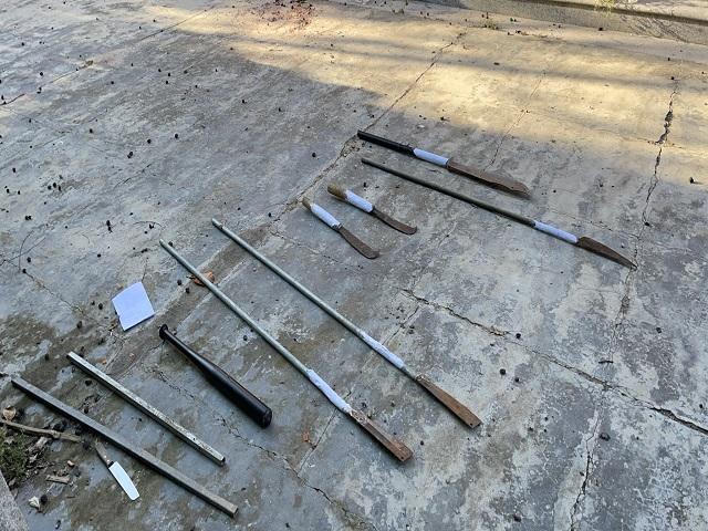 Khám xét nơi ở, cảnh sát tạm giữ 4 ĐTDĐ, 2 USB, 1 bộ máy tính, 142 hồ sơ vay tiền, 1 giấy chứng nhận đăng ký địa điểm kinh doanh và nhiều hung khí như 3 thanh kim loại hàn lưỡi dao nhọn, 2 rựa dài, 1 thanh dao cán.