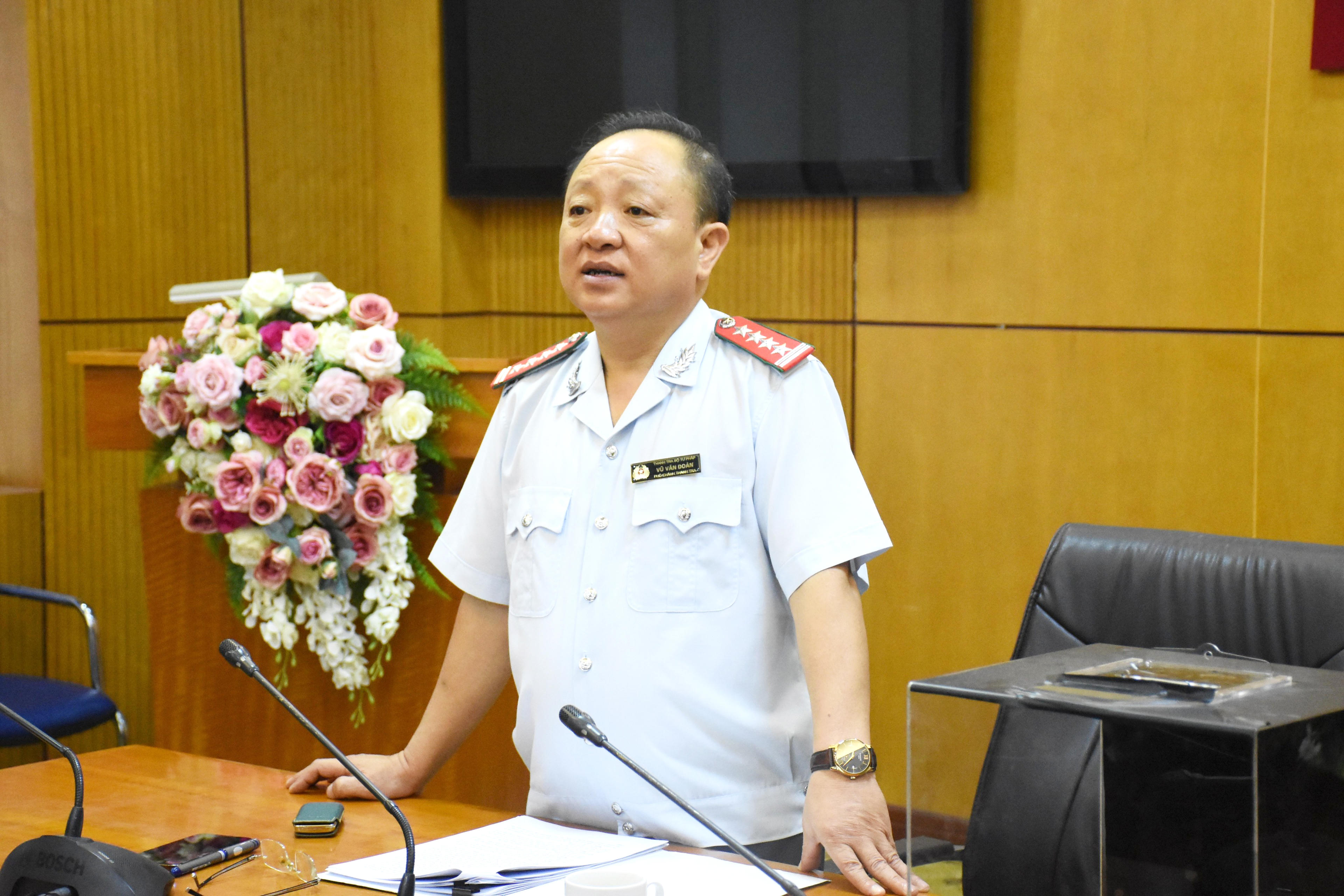 Phó Chánh Thanh tra Bộ Tư pháp Vũ Văn Đoàn phát biểu tại buổi làm việc. |