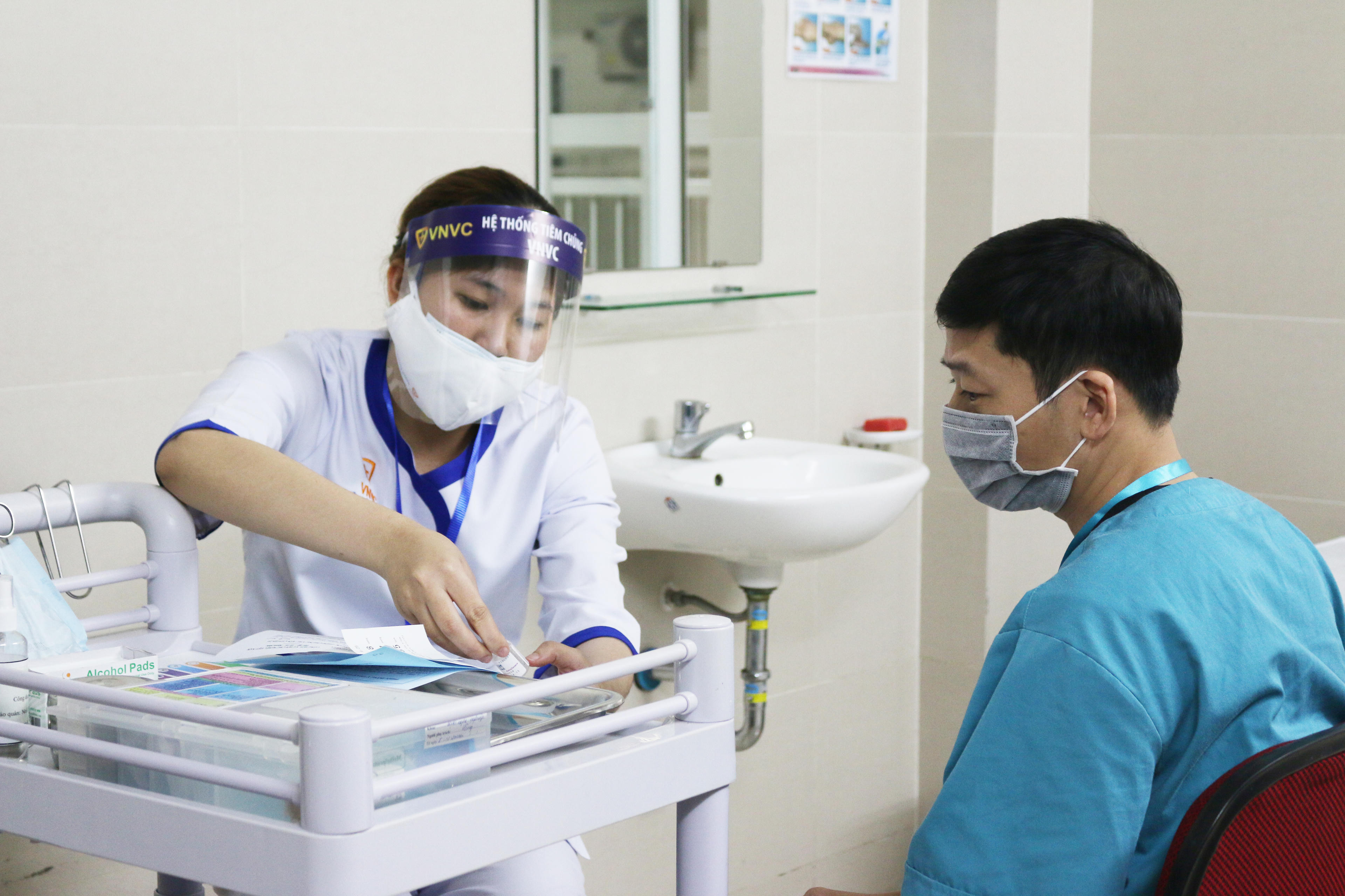 Ông Đào Quang Minh, Giám đốc Bệnh viện Thanh Nhàn cho hay, trước khi tiêm, Bệnh viện đã thông tin về các phản ứng có thể gặp sau tiêm đến từng nhân viên y tế, đồng thời Bệnh viện thiết lập sẵn quy trình tiêm khép kín với đầy đủ trang thiết bị cấp cứu, chống sốc.