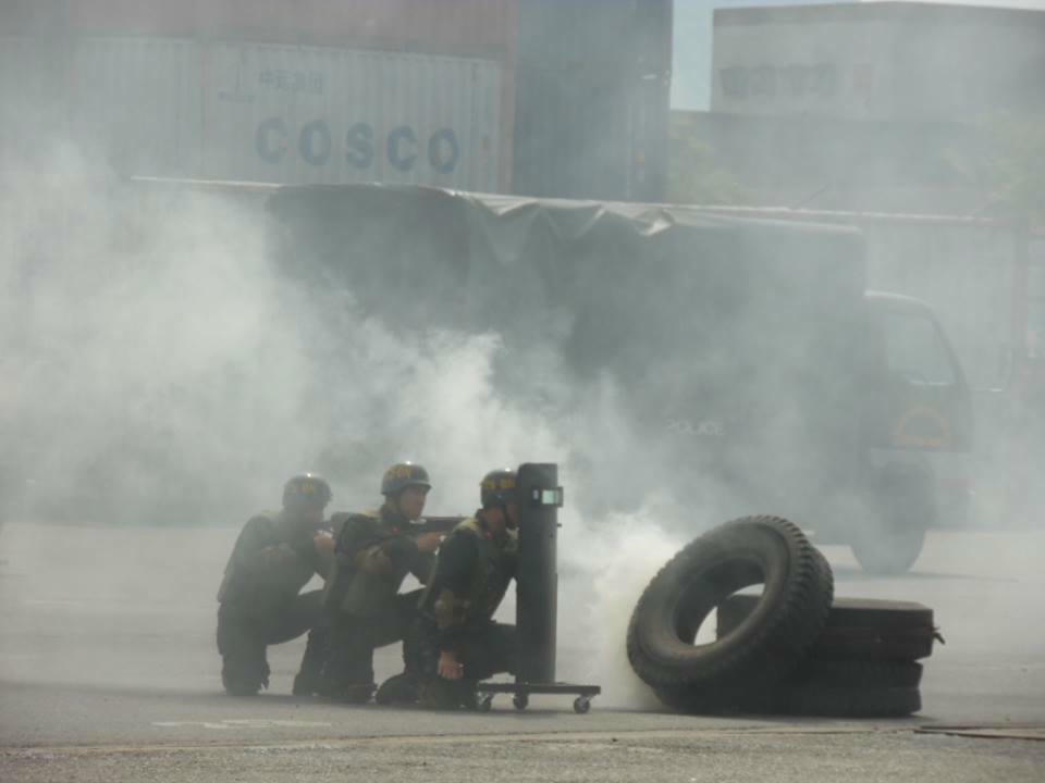 Lực lượng phát hiện nhóm khủng bố đặt bom trên cảng nên triển khai 4 tổ nghiệp vụ cùng các máy dò mìn, xe đặc chủng hủy bom mìn, súng phá hủy cơ cấu nổ bằng thủy lực... để rà phá, tiêu hủy 6 quả bom ở nhiều vị trí.