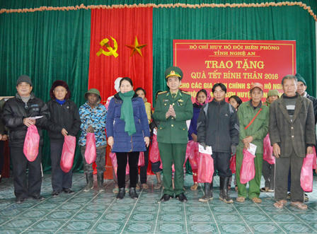 Thực hiện chương trình “Tết vì người nghèo-Tết Bính Thân”, BĐBP tỉnh Nghệ An đã vận động quyên góp trong cán bộ chiến sỹ đơn vị với mức đóng góp mỗi người nửa ngày lương và 10 ngàn đồng/ mỗi chiến sỹ, hạ sỹ quan, được tổng số tiền 150 triệu đồng.