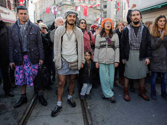 Hàng ngàn nam giới Thổ Nhĩ Kỳ đã mặc váy chụp ảnh, diễu phố để hưởng ứng chiến dịch bảo vệ phụ nữ tại quốc gia này. Sau khi xảy ra vụ án cô gái trẻ Ozgecan Aslan, 20 tuổi bị một tài xế xe bus đánh chết vì cưỡng hiếp không thành, chiến dịch bảo vệ phụ nữ đã được tổ chức rầm rộ trên khắp Thổ Nhĩ Kỳ. Người dân đã lên tiếng phản đối tình trạng bạo hành và cưỡng hiếp phụ nữ tại nước này nhiều năm qua.