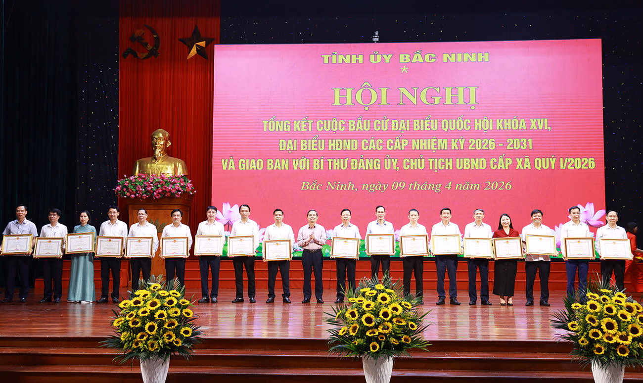 Nhân dịp này, Chủ tịch UBND tỉnh Bắc Ninh tặng Bằng khen cho 48 tập thể và 263 cá nhân có thành tích xuất sắc trong công tác bầu cử đại biểu Quốc hội khóa XVI và đại biểu Hội đồng nhân dân các cấp, nhiệm kỳ 2026-2031.