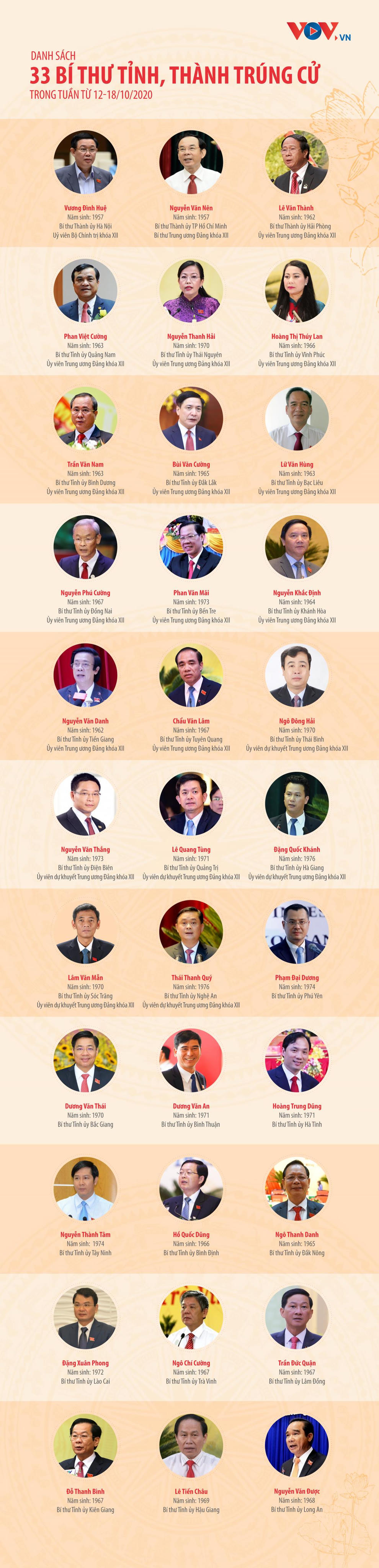 33 Bí thư tỉnh, thành trúng cử trong tuần từ 12-18/10/2020
