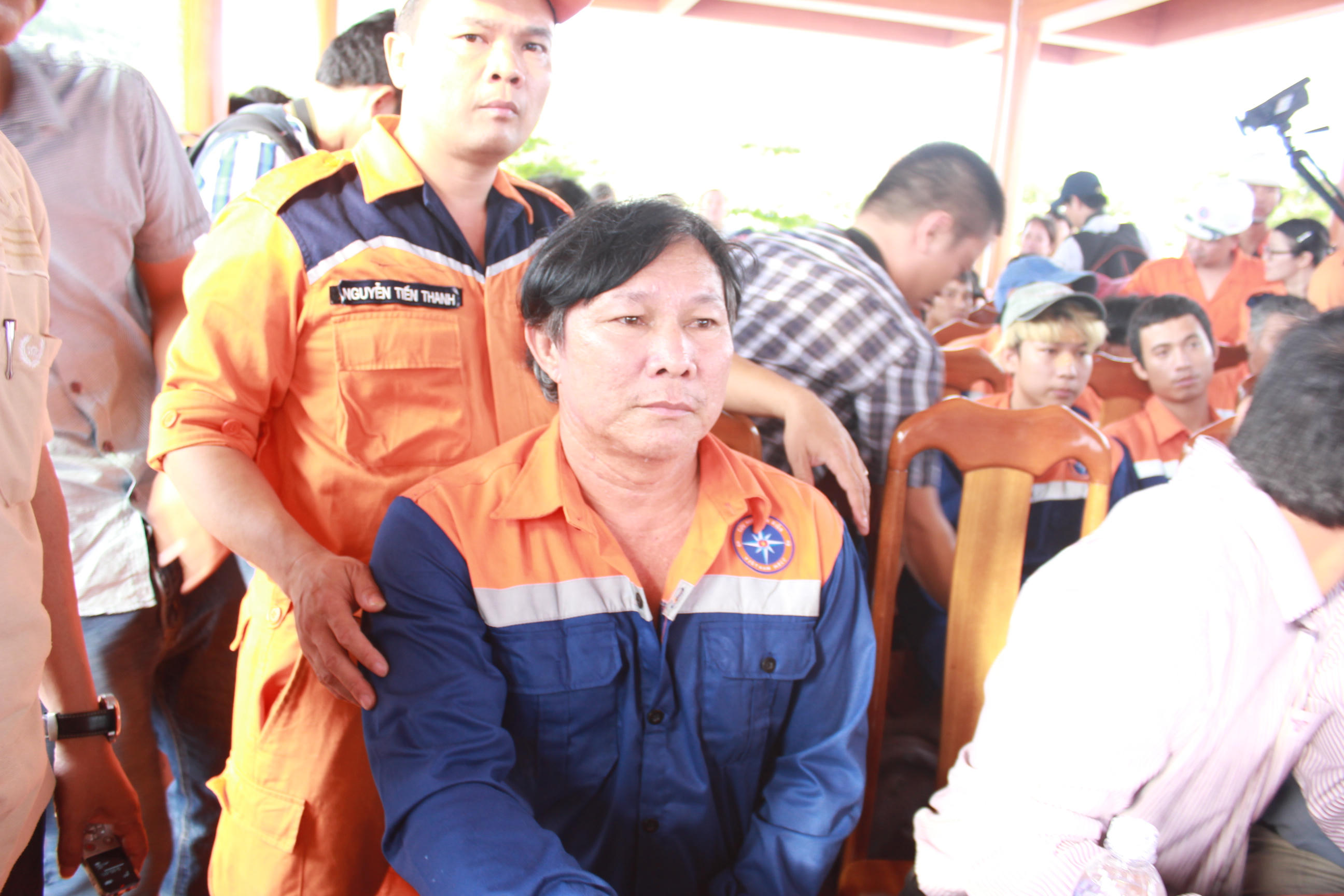 Bắt chuyến xe sớm cùng bà Luận ra Đà Nẵng, cụ bà Nguyễn Thị Tấm (70 tuổi, ngụ Bình Tịnh, Thăng Bình) khóc đến kiệt sức. Con trai cụ Tấm, anh Nguyễn Văn Thành (30 tuổi) tham gia trong chuyến đi biển lần này. Vợ đang mang bầu, lại chăm 2 con nhỏ nên không thể ra đón Thành, bà đành mặc kệ sức khỏe không cho phép, cốt ra tận nơi để nhìn đứa con được “lành lặn” trở về sau hơn 2 tháng đi biển.