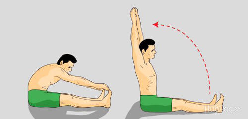 Kéo căng cột sống ở tư thế ngồi là bài tập cơ bản và hiệu quả nhất. Tiến hành bài tập này, bạn thực hiện như sau: ngồi thẳng lưng trên sàn nhà, hai chân mở rộng hình chữ V, hai tay giơ ra trước mặt, rộng bằng vai và song song với mặt đất.