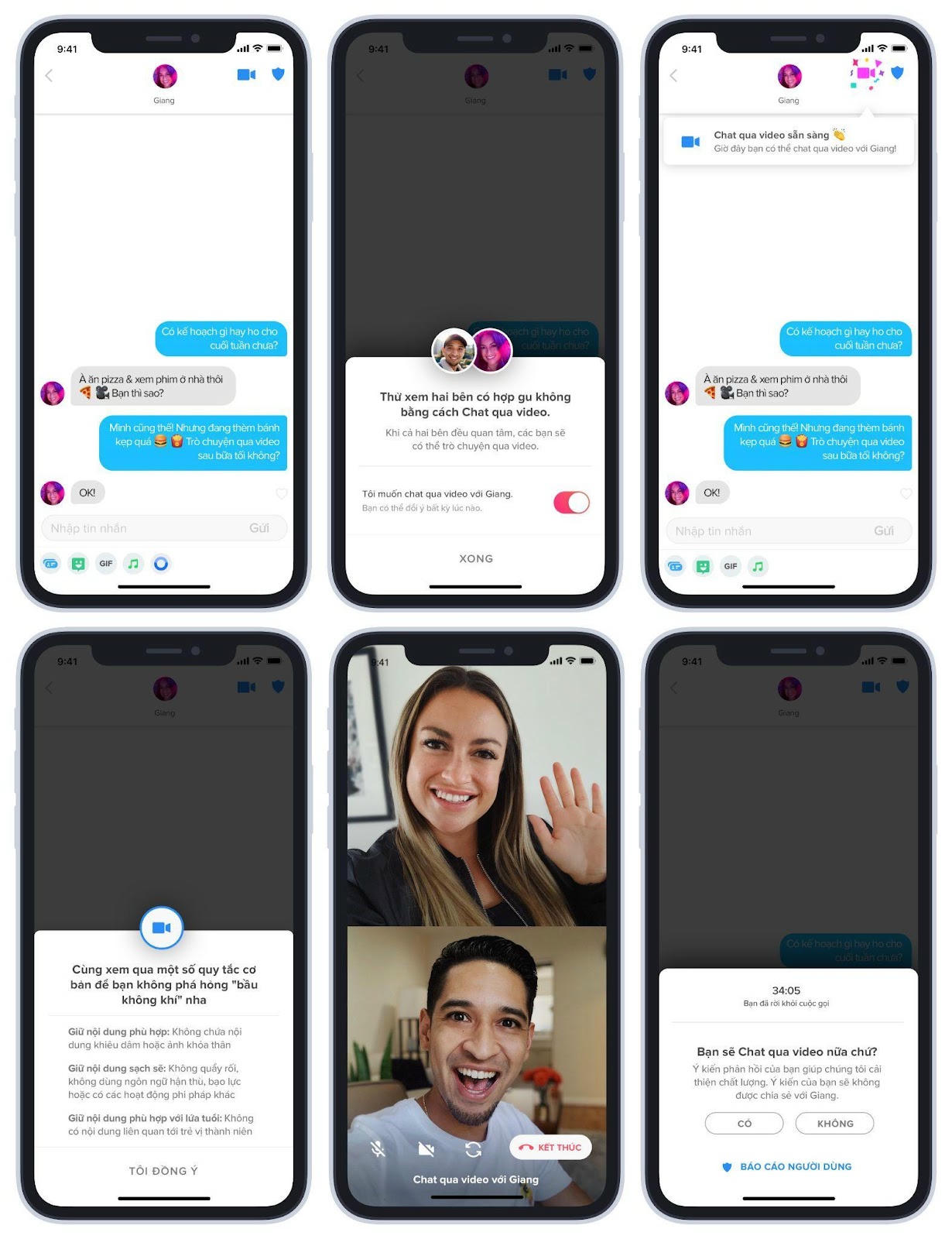 Cảm giác chờ đợi tin nhắn từ các đối tượng tương hợp khá hồi hộp nhưng hầu hết chúng ta đều muốn được nhìn thấy ai đó trước khi hẹn hò. Hãy thử gọi video trên Tinder để tìm hiểu nhau, kiểm tra phản ứng hóa học của cả hai trước khi bắt đầu buổi hẹn hò, đồng thời giúp bạn hiểu rõ hơn về đối tượng tương hợp của mình. Bằng cách này, bạn có thể thực hiện một cuộc trò chuyện riêng tư hơn thay vì chỉ trao đổi tin nhắn qua lại mà không cần rời khỏi ứng dụng hay cung cấp bất kỳ thông tin liên hệ cá nhân nào.