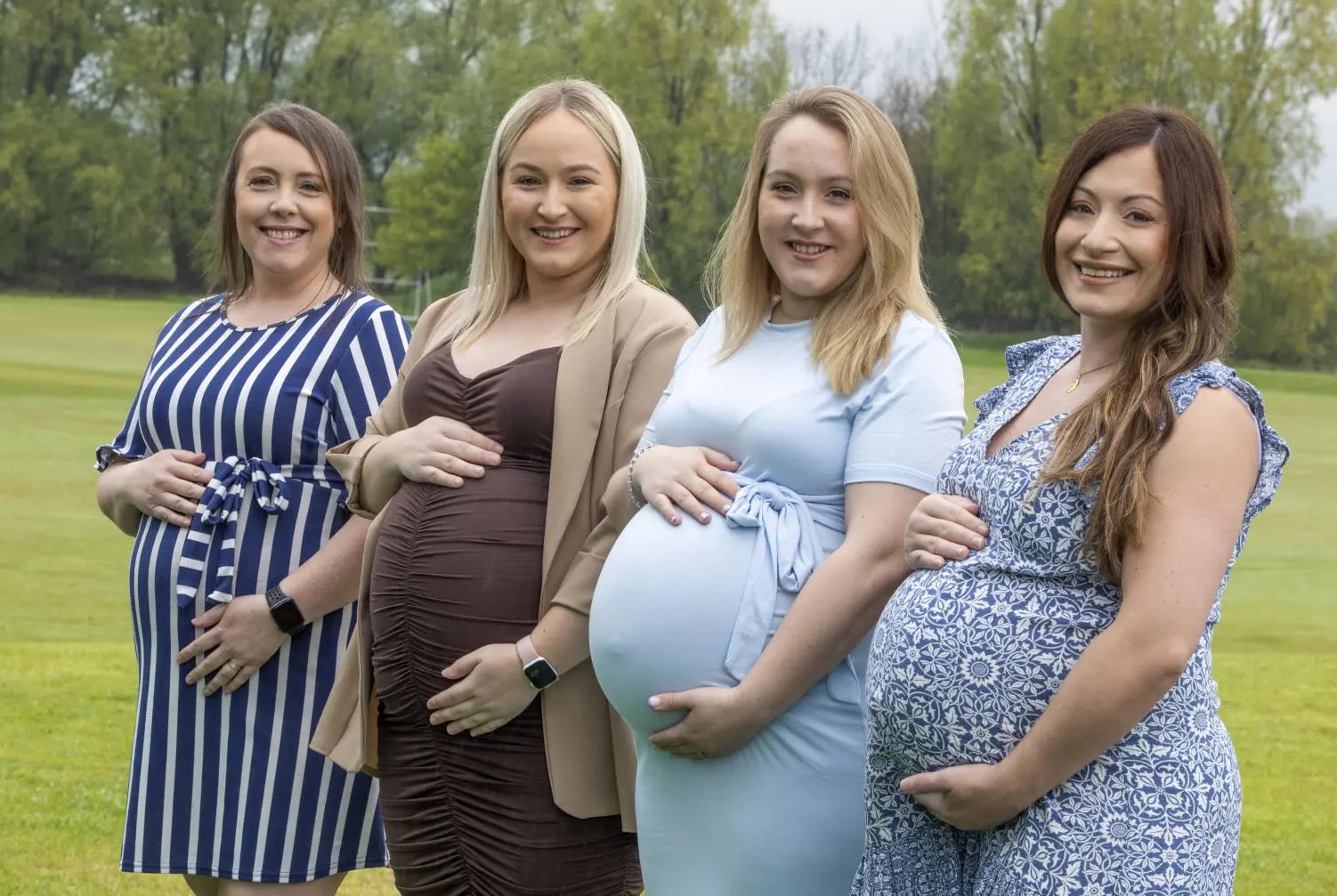 | 4 chị em nhà Goodwillie mang thai cùng lúc. Ảnh:Katielee Arrowsmith SWNS. |