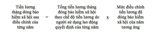 Cụ thể, tiền lương tháng đã đóng bảo hiểm xã hội đối với nhóm đối tượng trên được điều chỉnh theo công thức sau: