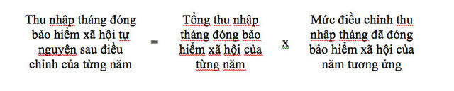 Thu nhập tháng đã đóng BHXH đối với nhóm đối tượng trên điều chỉnh theo công thức sau: