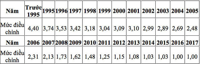 Trong đó, mức điều chỉnh thu nhập tháng đã đóng BHXH của năm tương ứng được thực hiện như sau: