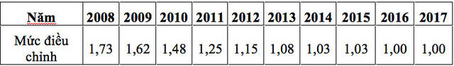 Theo Thông tư 42/2016/TT-BLĐTBXH do Bộ Lao động - Thương binh và Xã hội ban hành, có hiệu lực từ ngày 11/2, mức điều chỉnh tiền lương, thu nhập tháng đã đóng bảo hiểm xã hội năm 2017 là 1,00.