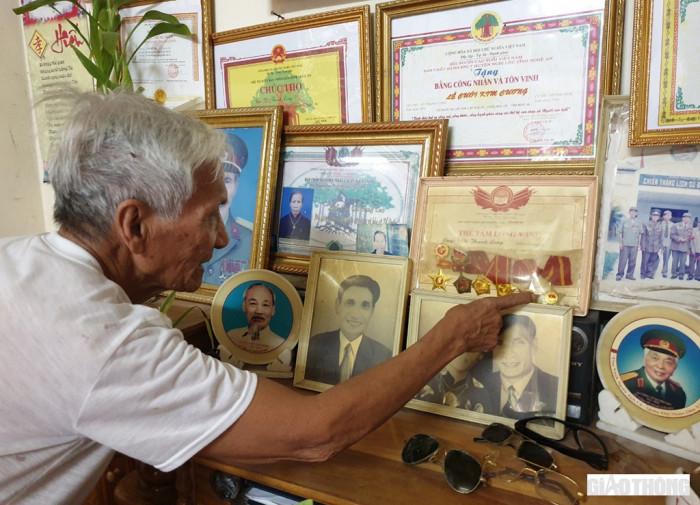 Rồi cụ dắt PV vào trước hộp kính đựng kín những huân huy hiệu được ông trưng bày ở nơi trang trọng nhất trong tủ li phòng khách. Cụ tự hào kể, ở huyện Nghi Lộc này chỉ có 2 người là có huy hiệu chiến sĩ Điện Biên. Hiện một người đã mất, còn người thứ 2 là tôi.
