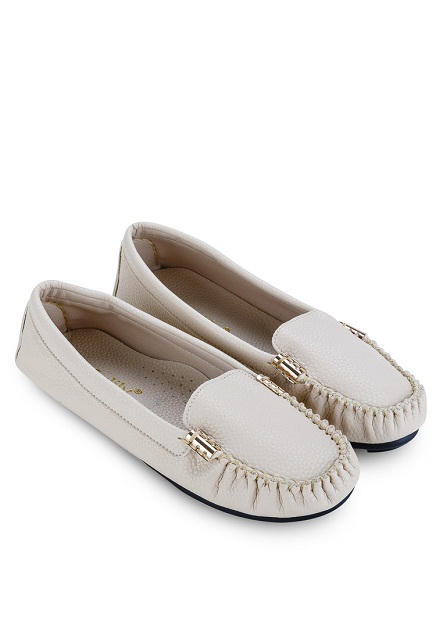 Giày mọi nữ đẹp màu kem được các nàng vô cùng quan tâm trong mùa thu đông năm nay với thiết kế phối kim loại màu vàng 2 bên hông lưỡi giày đơn giản mà vẫn thanh lịch. Thiết kế cổ điển với mũi giày tròn, may viền chỉ nổi dày ở mũi và sau gót tạo được điểm nhấn riêng cho cả đôi giày. Với giày mọi nữ đẹp màu kem, các nàng thỏa thích phối với các trang phục khác nhau và đa dạng màu sắc. Kiểu giày với màu sắc nhẹ nhàng này sẽ mang đến cảm giácấm áp khi diện cùng áo len hay áo khoác vào mùa đông và luôn nổi bật, cuốn hútở mọi lúc mọi nơi.