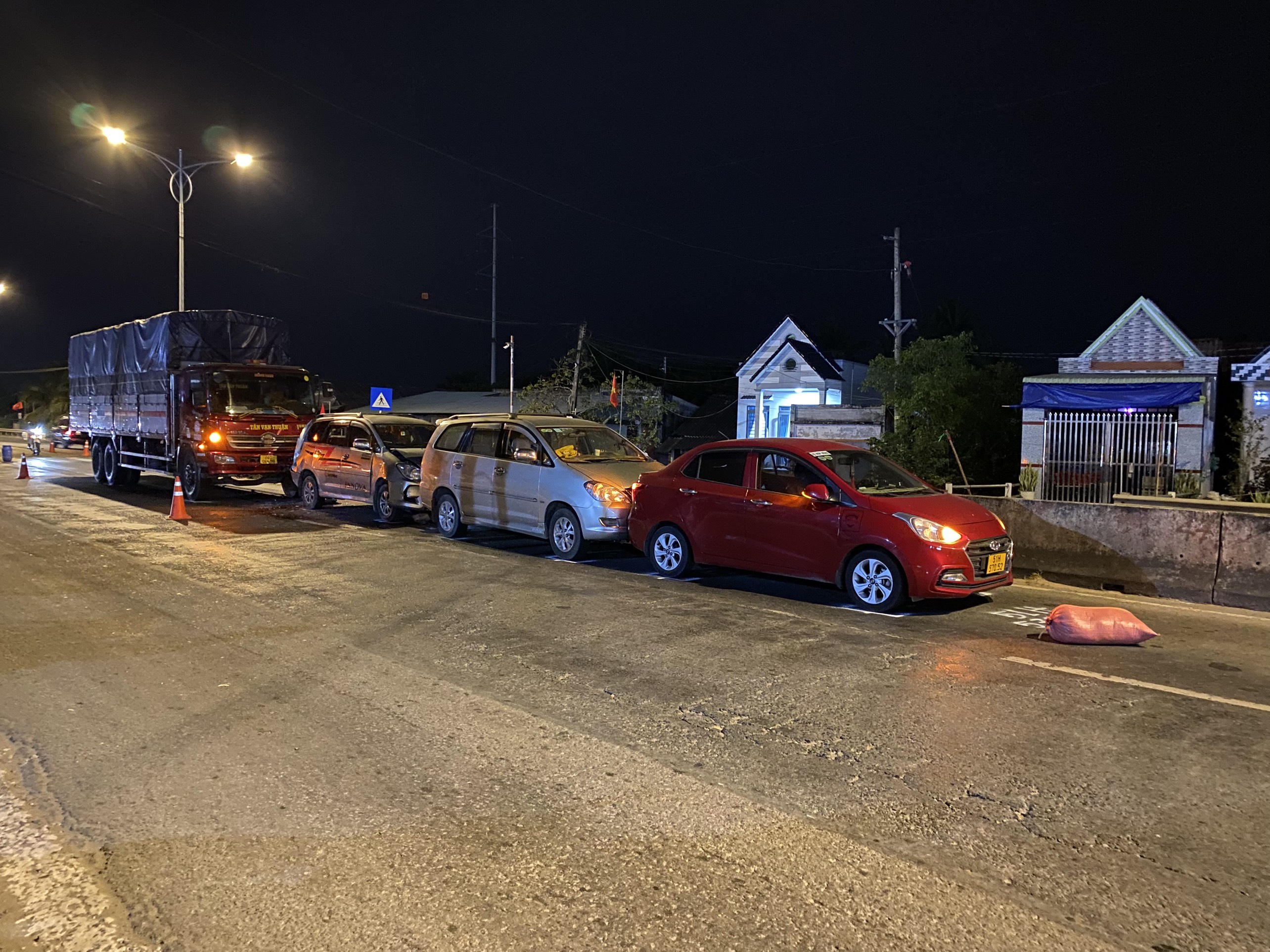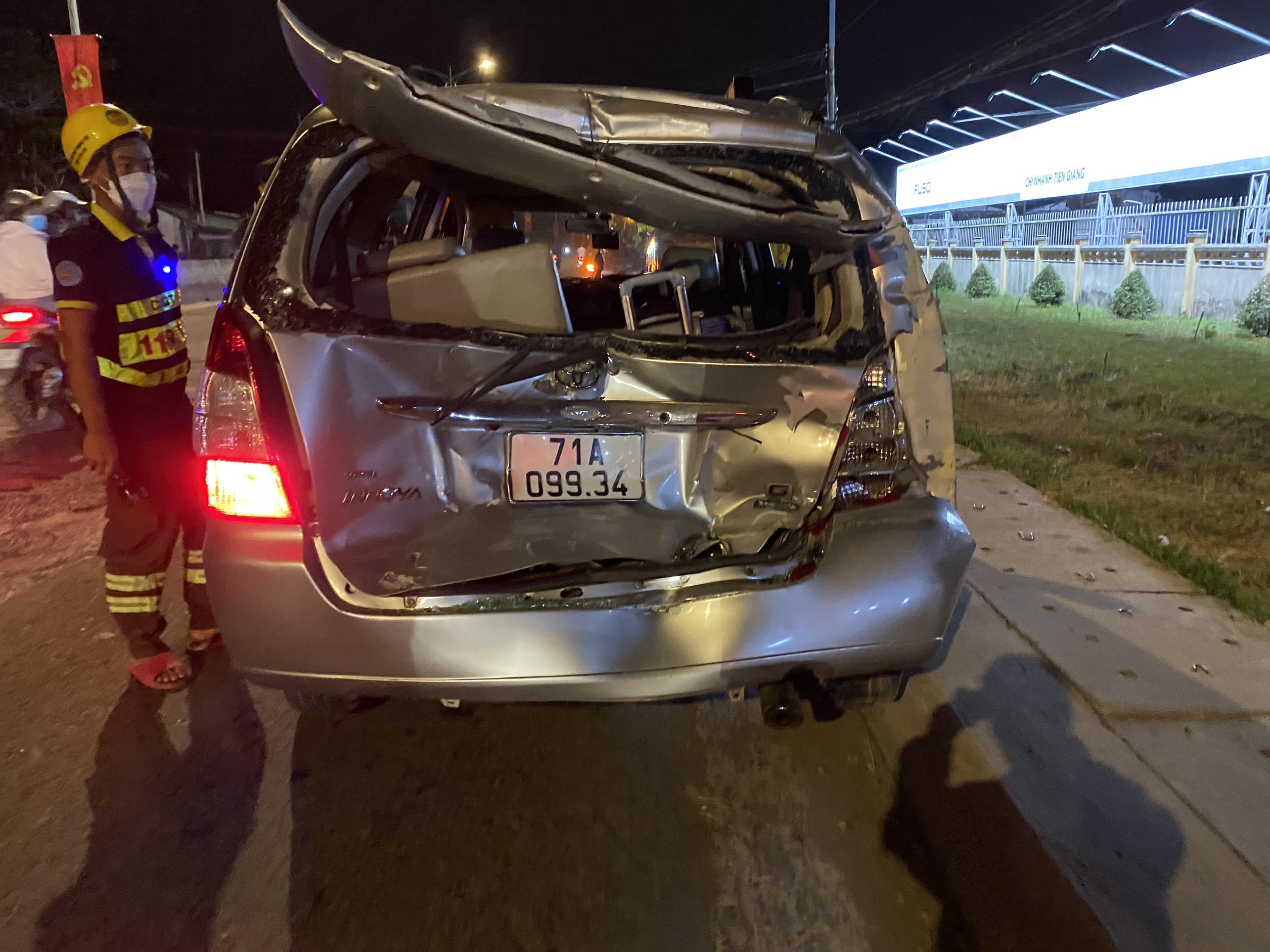 Khi đến đoạn qua xã Long An, huyện Châu Thành, tỉnh Tiền Giang, tài xế phát hiện một bao tải nằm trên đường nên giảm tốc độ. Xe ô tô 7 chỗ mang biển kiểm soát 70A-058.58 và xe 7 chỗ mang biển kiểm soát 71A-099.34 cũng giảm tốc độ.