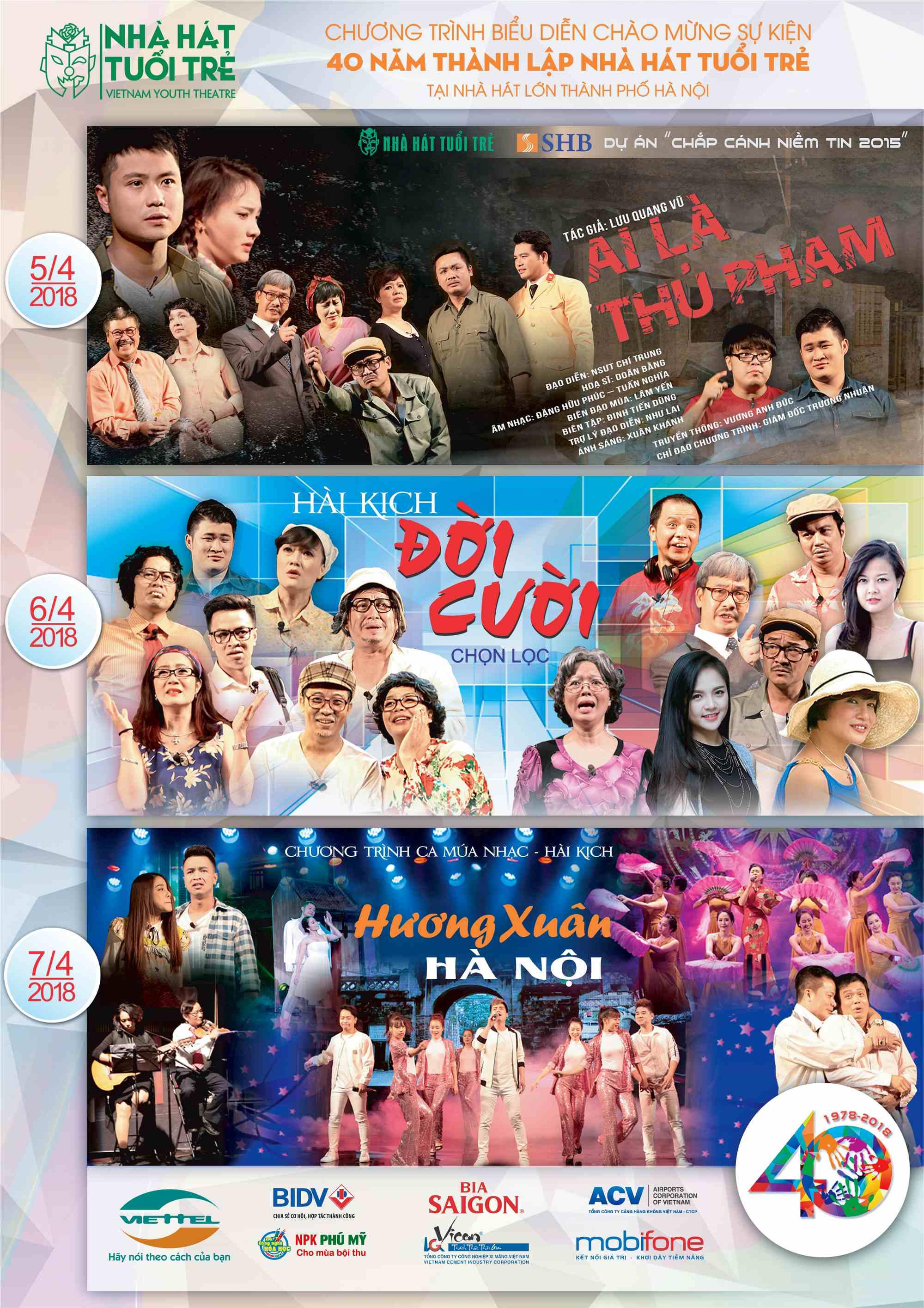 Nhà hát Tuổi trẻ long trọng tổ chức “Lễ kỉ niệm 40 năm thành lập Nhà hát Tuổi trẻ” với mục đích tôn vinh, tri ân các thế hệ nghệ sỹ, diễn viên, cộng tác viên, các tổ chức, đơn vị đã đồng hành cùng Nhà hát trong suốt chặng đường 40 năm qua. Đặc biệt, Tổng Công ty Cổ phần Bia- Rượu- Nước giải khát Sài Gòn (Sabeco) đồng hành với “Chương trình kỉ niệm 40 năm thành lập Nhà hát Tuổi trẻ”.