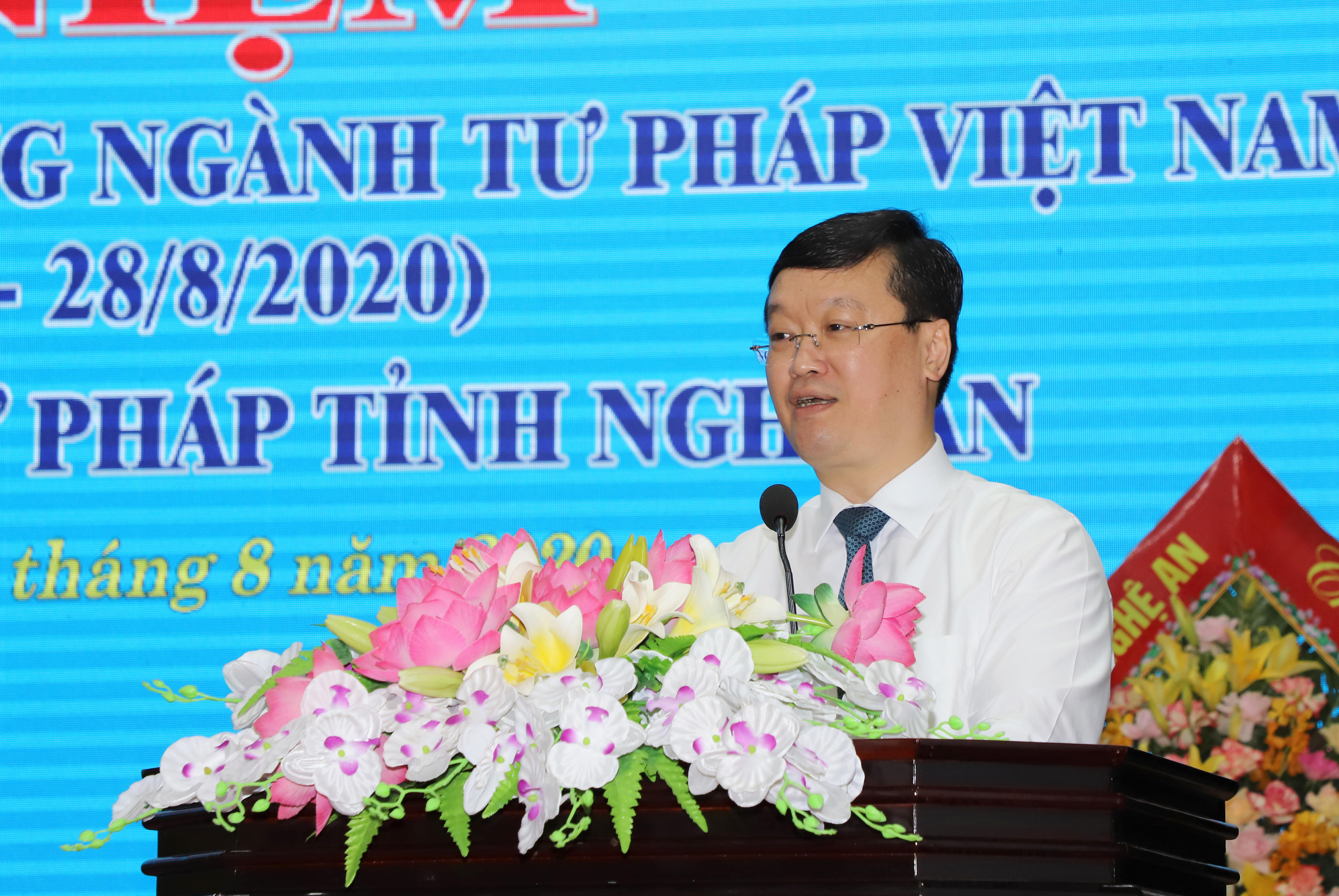 Phát biểu tại lễ kỷ niệm, Chủ tịch UBND tỉnh Nghệ An Nguyễn Đức Trung ghi nhận những đóng góp quan trọng đối với sự phát triển kinh tế xã hội của tỉnh nhà. Cùng với sự quan tâm, lãnh đạo chỉ đạo của cấp ủy Đảng, chính quyền các cấp, ngành Tư pháp đã luôn chủ động, sáng tạo, hoàn thành tốt mọi nhiệm vụ được giao, đáp ứng yêu nhiệm vụ chính trị của địa phương.