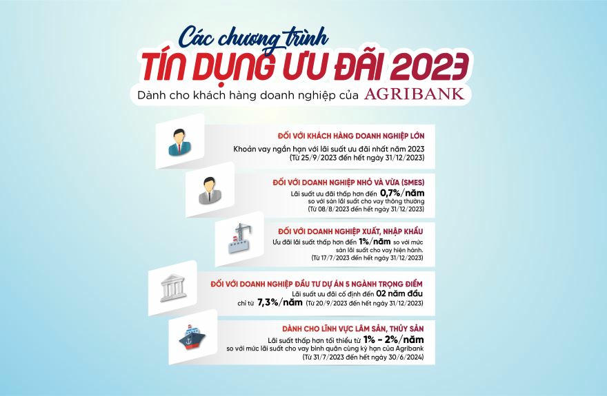 5 chương trình tín dụng ưu đãi cho khách hàng doanh nghiệp của Agribank năm 2023