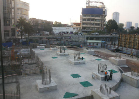 Dù đã có người ra vào nhưng quan sát cho thấy, trong mấy ngày gần tết chỉ có khoảng 5 công nhân đi vào khu đất, đứng nhìn hoặc khảo sát các lõi sắt nhô lên từ nền móng công trình được xây dựng nhiều năm trước đó. Vị trí dự án này cách cổng Sở Tài nguyên và Môi trường Hà Nội chỉ khoảng 100m.