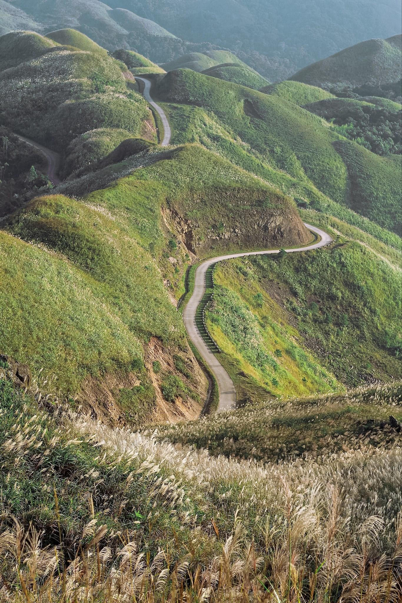 Từ cuối tháng 10, cỏ lau bung nở trắng xóa các sườn đồi nằm ven đường chinh phục các cột mốc biên giới. Càng lên cao, đường đi càng nhỏ hẹp, uốn lượn, cheo leo nhưng cảnh sắc càng trở nên bao la, hùng vĩ.