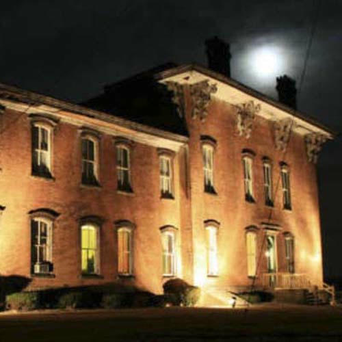 Ngôi biệt thự rộng lớn này được G.W. Adams cho xây dựng vào năm 1856 với nhiều tính năng độc đáo như hệ thống làm lạnh trong khu vực tầng hầm. Người dân địa phương nơi đây đã quá quen thuộc với câu chuyện về Constance Cox - một cô gái trẻ đã chết do ngã từ ban công tòa nhà vào một ngày mùa đông lạnh giá trong thế kỷ 19. Thi thể cô bé đã được ướp lạnh trong tầng hầm của ngôi nhà nhằm đợi đến mùa xuân để chôn cất. Người ta tin rằng dưới tầng hầm hiện nay, hồn ma của Cox vẫn còn vương vất. Nơi đây trong nhiều năm đã trở thành điểm săn ma lý tưởng của nhiều các chuyên gia săn ma.