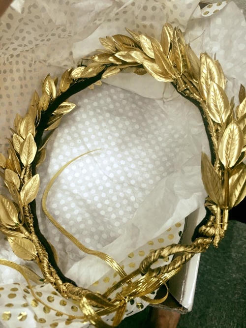 Cận cảnh chiếc vòng nguyệt quế được mạ vàng tại chung kết Olympia năm thứ 16. |
