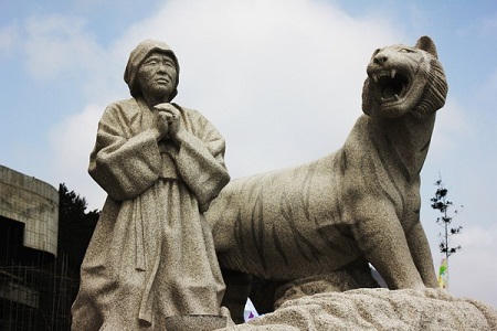 Người dân nơi đây đã quen thuộc với câu chuyện và còn tạc nên bức tượng bà Bbyong cùng với con hổ dữ (Ảnh: kimchiguesthouse)