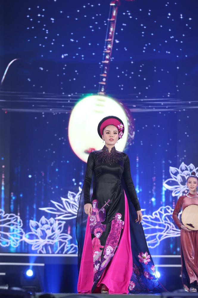 Kế đến, Hoa hậu Kỳ Duyên xuất hiện cực thần thái trong áo dài họa tiết đờn ca tài tử do NTK La Sen Vũ tạo nên. Năm cô đăng quang 2014, Festival Đờn ca tài tử toàn quốc lần thứ nhất đã tôn vinh mạnh mẽ các di sản văn hóa phi vật thể của dân tộc, đồng thời giới thiệu tiềm năng phát triển kinh tế, du lịch của các địa phương. Nghệ thuật đờn ca tài tử là một viên ngọc vô giá cần được bảo tồn và phát huy.