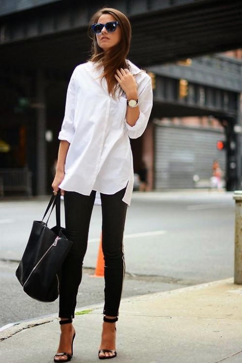 Việc mix cùng những chiếc áo trắng có chiều dài qua vòng 3 là cách phổ biến nhất với legging. Bạn nên cân nhắc để chọn lựa chiếc áo có độ dài phù hợp với tỉ lệ cơ thể.