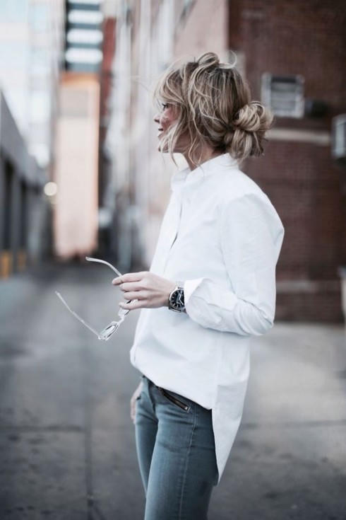 1. Áo sơ mi trắng kết hợp với quần jeans