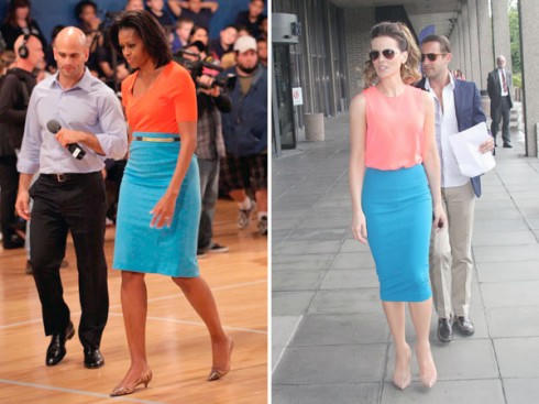 Kết hợp áo với chân váy bút chì theo style “color-block” (nhiều màu tương phản) cũng là một cách rất thú vị.