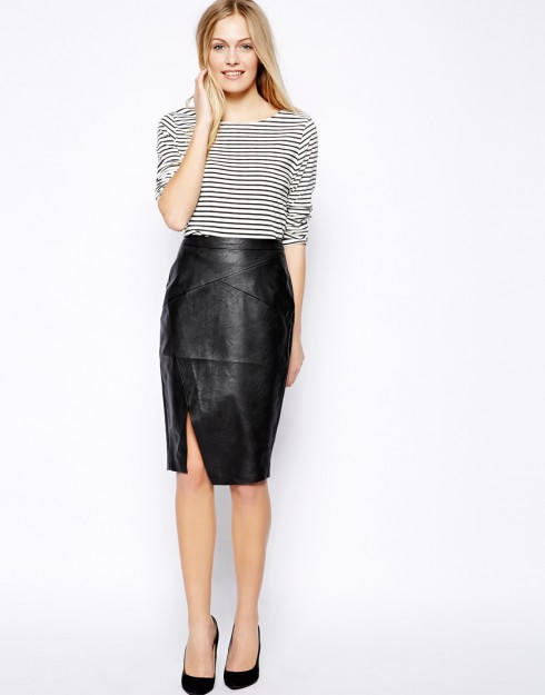 Chân váy bút chì da khá hợp với những cô nàng thành thị sành điệu.