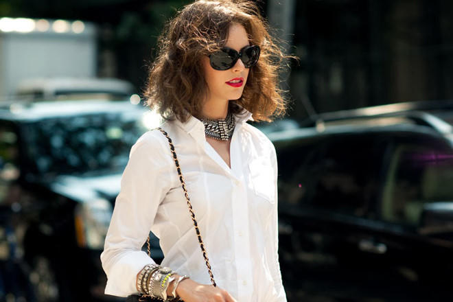 1. Thay đổi cách cài cúc áo. Thật ngạc nhiên nhưng đây lại là một trong những bí quyết diện đẹp và lạ của nhiều fashionista trên thế giới. Chỉ cần thay đổi thói quen mặc áo sơ mi khác năm cũ một chút, chẳng hạn nếu trước kia bạn luôn cài toàn bộ cúc áo thì năm nay hãy tạo nét tươi mới, phóng khoáng hơn cho mình bằng cách để phần cổ áo “lả lơi” với vài chiếc khuy không cài cúc.