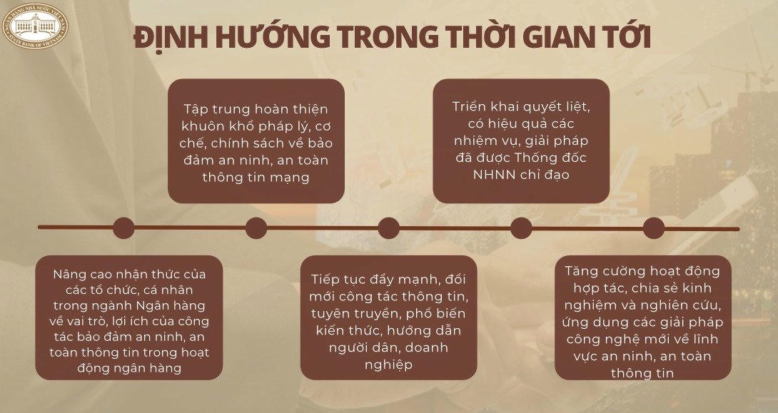 Theo đó, trong 05 năm qua, NHNN đã có hơn 90 lượt văn bản chỉ đạo, cảnh báo về công tác bảo đảm an ninh, an toàn thông tin các đơn vị trong Ngành, trong đó yêu cầu các đơn vị triển khai đồng bộ các giải pháp để nâng cao nhận thức về an ninh, an toàn thông tin cho toàn thể nhân viên và khách hàng của ngân hàng.