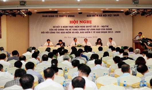 (PLO) - Sáng ngày 28/6, Ban Kinh tế Trung ương đã phối hợp với Bảo hiểm xã hội (BHXH) Việt Nam tổ chức Hội nghị Sơ kết 05 năm thực hiện Nghị quyết số 21-NQ/TW của Bộ Chính trị về tăng cường sự lãnh đạo của Đảng đối với công tác BHXH, bảo hiểm y tế (BHYT) giai đoạn 2012-2020. Uỷ viên Bộ Chính trị, Bí thư Trung ương Đảng, Trưởng ban Kinh tế Trung ương Nguyễn Văn Bình chủ trì hội nghị.