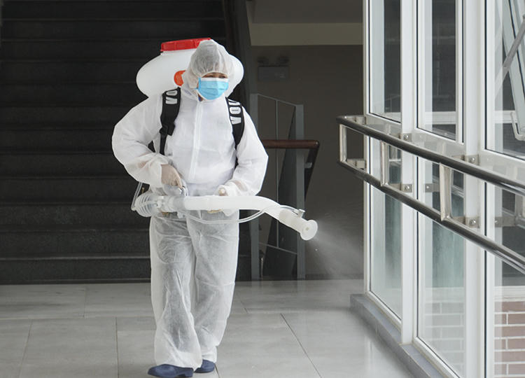Nhân viên ytế phun thuốc khử trùng ở trường Phổ thông liên cấp Edison tạiEcopark, Hưng Yênngày 25/2. Ảnh:Vân Ngọc. |