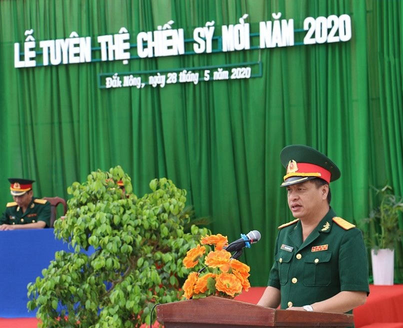 Phát biểu tại buổi lễ, Thượng tá Đinh Hồng Tiếng - Chỉ huy trưởng Bộ Chỉ huy Quân sự tỉnh đề nghị, mỗi chiến sĩ phải có ý thức tự giác, trách nhiệm trọn đời với lời thề thiêng liêng, nỗ lực và quyết tâm thực hiện tốt nhiệm vụ của quân nhân, không ngừng nâng cao trình độ, khả năng sẵn sàng chiến đấu thắng lợi trong mọi tình huống, góp phần xây dựng nền quốc phòng toàn dân vững mạnh.