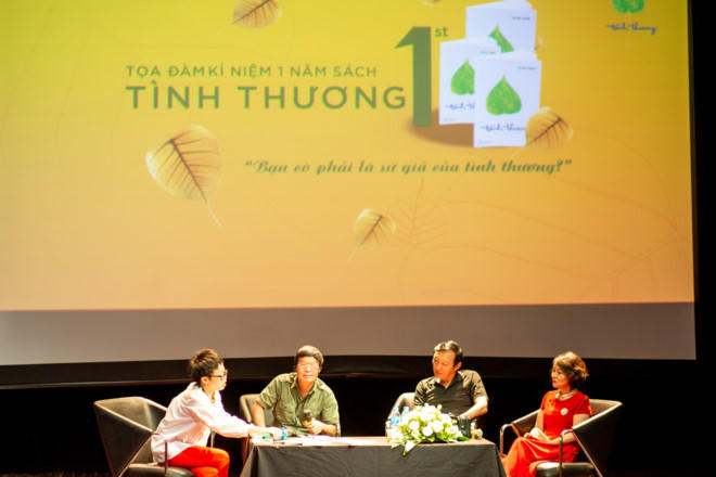 Buổi tọa đàm mang chủ đề: “Bạn có phải là sứ giả tình thương?” sôi động nhưng cũng đầy sâu lắng với sự luận bàn của các vị khách mời danh dự như: nhà thơ Vũ Quần Phương, nhà văn Hữu Ước, giáo sư Nguyễn Lân Dũng, ông Trần Vũ Hoài, Nguyễn Đức Quang- Tổng Biên tập Báo Thiếu Niên Tiền Phong, nghệ sĩ Quyền Văn Minh, nghệ sĩ Trần Mạnh Tuấn, nghệ sĩ Thanh Lam, nghệ sĩ Quyền Thiện Đắc...