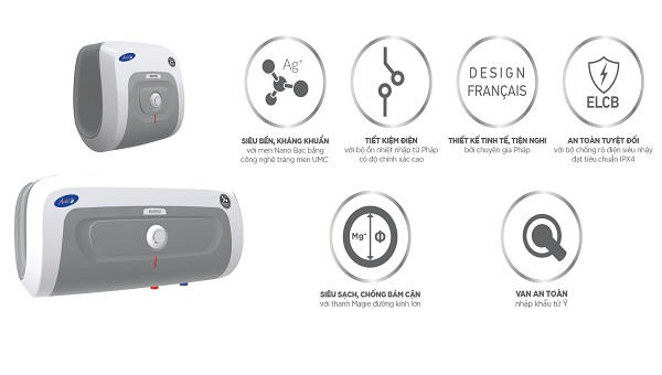 Kế thừa tính năng và kiểu dáng từ phiên bản “Nữ hoàng Bình nước nóng”, Bình nước nóng phiên bản mới Rossi Arte-C ứng dụng công nghệ 4.0, trên nền thiết kế Pháp tinh xảo, tăng thêm đẳng cấp cho ngôi nhà của khách hàng. Sản phẩm sử dụng công nghệ tráng men tiên tiến UMC với lớp men Nano Bạc giúp kháng khuẩn và kháng sự ăn mòn của nước cứng, thanh Magie đường kính lớn chống bám cặn và bảo đảm hiệu suất hoạt động luôn ổn định. Hệ thống chống rò điện ELCB siêu nhạy giúp an toàn tuyệt đối cho người sử dụng. Đặc biệt, với công nghệ tiên tiến, sản phẩm giúp tiết kiệm điện lên tới 15% so với bình nước nóng thông thường.