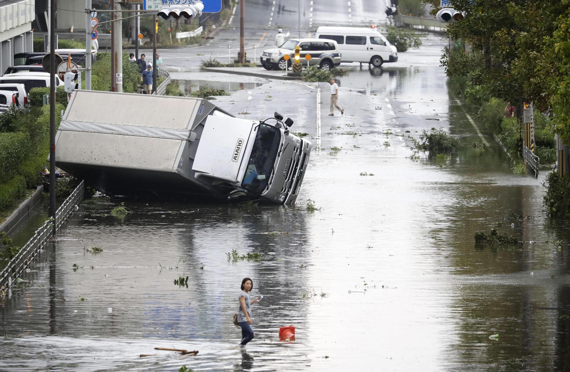 Theo hãng tin Kyodo của Nhật, bão Jebi khi đổ bộ vào Nhật Bản ngày 4/9 đã khiến sân bay Kansai phải đóng cửa vì gió lớn và sóng cao.