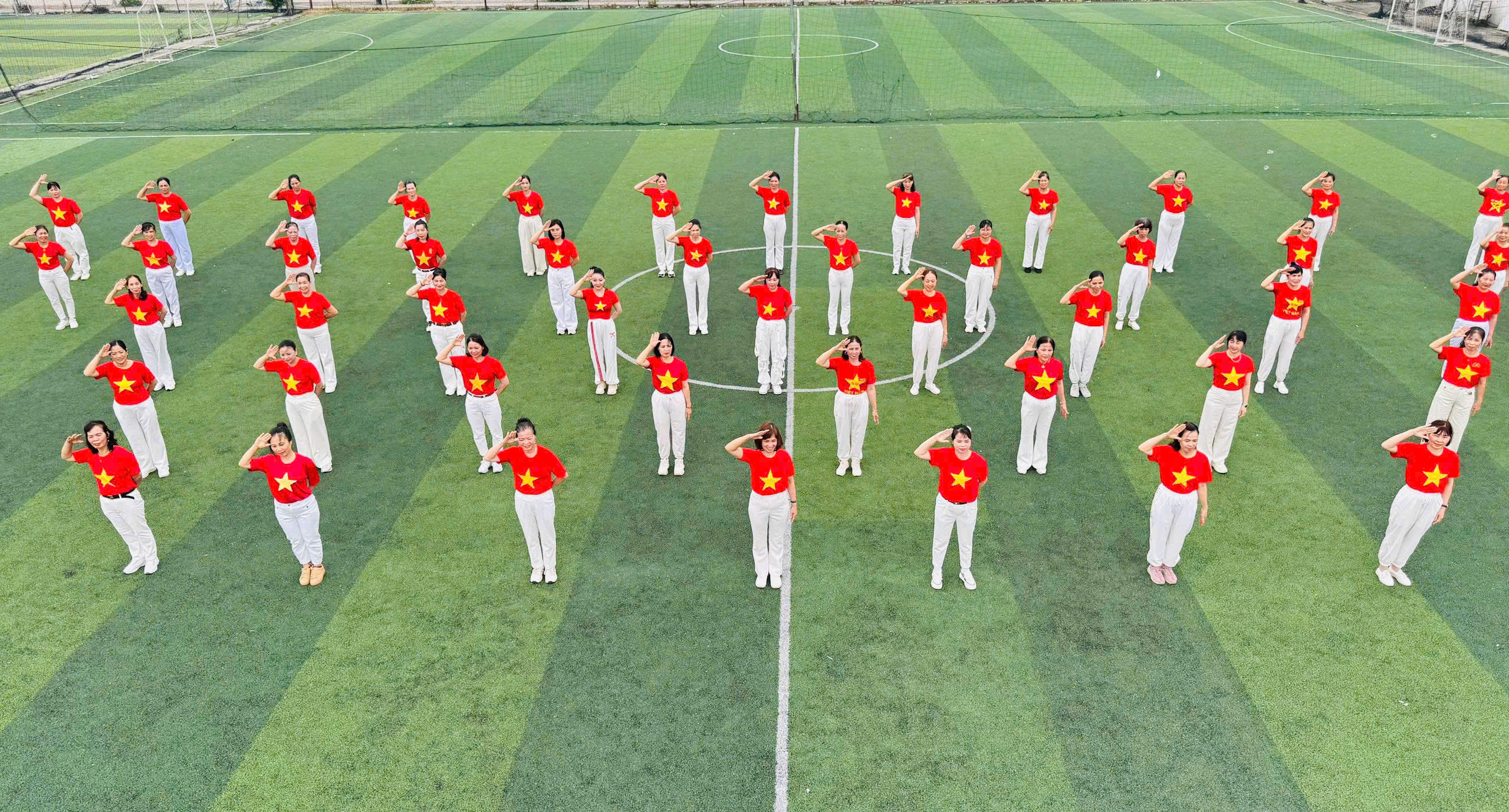 Tại các điểm trụ sở UBND phường, xã, thị trấn, nhà văn hoá, vườn hoa cộng đồng và sân vận động, hình ảnh những chiếc áo cờ đỏ sao vàng, những tà áo dài thướt tha tạo nên khung cảnh rực rỡ, xúc động và tràn đầy niềm tự hào dân tộc.