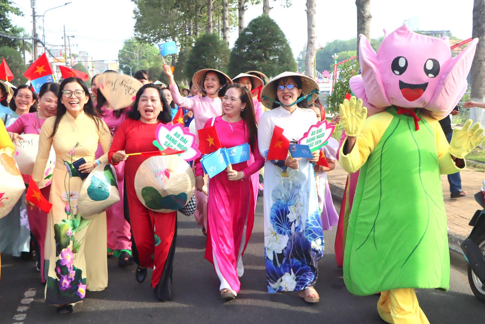 Đoàn diễu hành bắt đầu từ Khu di tích Nguyễn Sinh Sắc - thân sinh Chủ tịch Hồ Chí Minh (phường 4, TP Cao Lãnh) và đi dọc các tuyến đường phường 4, phường 2 (TP Cao Lãnh). Những cung đường đoàn diễu hành đi qua đều trở nên rạng rỡ, đa sắc màu. Trong trang phục áo dài thướt tha, trên tay nhiều chị em còn cầm thêm hoa sen tươi, nón lá, biểu tượng bé Sen… và khẩu hiệu tuyên truyền.