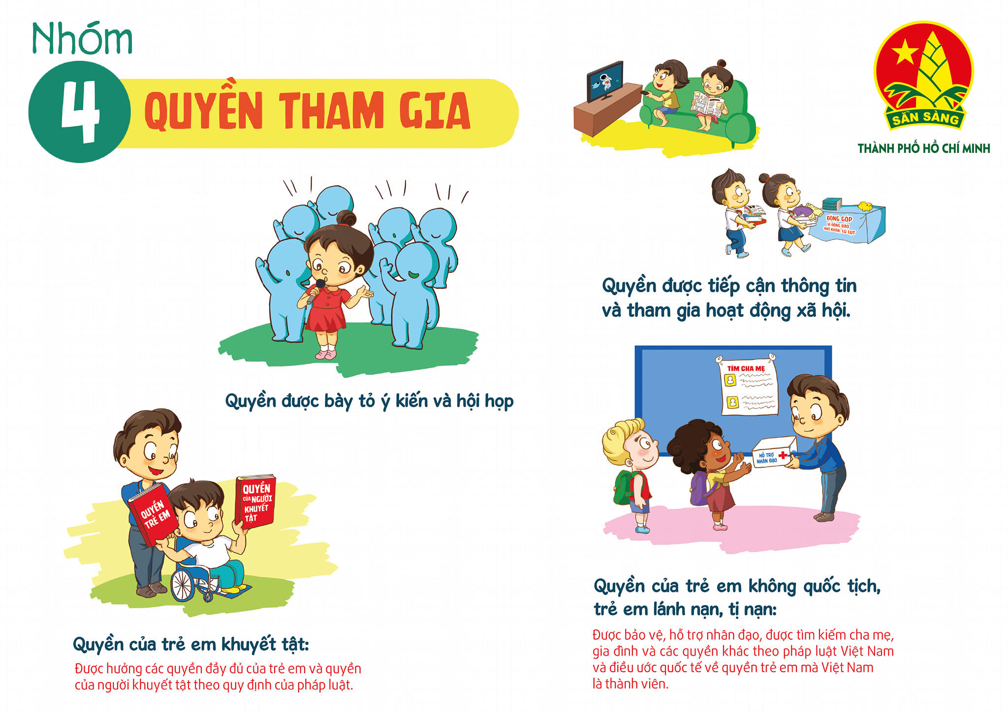 Quyền tham gia của trẻ em là một trong bốn nhóm quyền của Luật Trẻ em năm bao gồm quyền được sống còn, quyền được phát triển, quyền được bảo vệ và quyền được tham gia. Nguồn: Thành Đoàn TP HCM |
