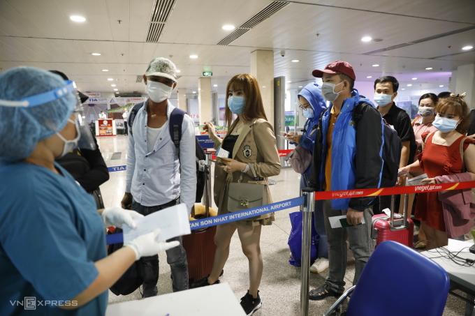 Hành khách tại sân bay Tân Sơn Nhất, tháng 5/2021. Ảnh: Hữu Khoa