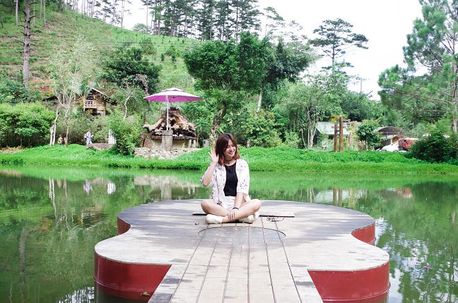 Điểm nhấn tạo nên sự hấp dẫn của Ma Rừng Lữ Quán chính là cây đàn nổi giữa hồ nước, vườn hoa màu tím lãng mạn, cây cầu treo nối dài và những ngôi nhà gỗ được xây dựng theo phong cách châu Âu, đẹp nhất chính là ngôi nhà màu tím nằm trên sườn đồi.