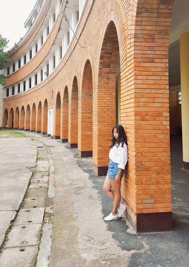 Nhìn bao quát bên ngoài, tường nhà được xây cách điệu các mái vòm với tỷ lệ hài hòa tạo nên vẻ đẹp thanh thoát cho khối nhà. Với kiến trúc độc đáo kết hợp giữa hai nền văn hóa Đông Tây như vậy, nơi đây là địa điểm lý tưởng cho các bạn trẻ thỏa sức tạo dáng, tạo nên những bức ảnh độc đáo cho riêng mình.